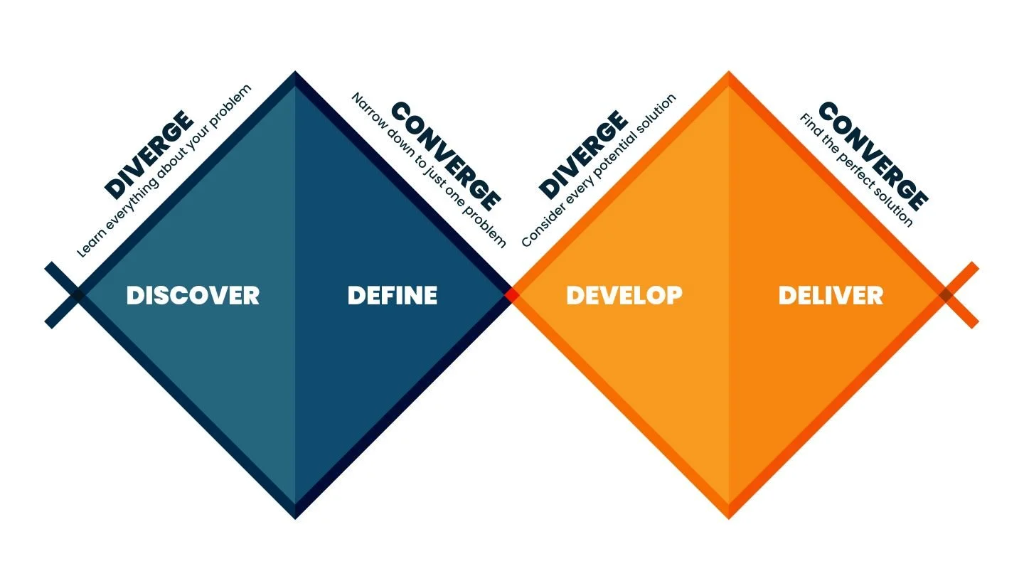 To validate this hypothesis and design a solution that truly addressed user needs, I followed the Double Diamond framework, structuring my process to move from broad research to targeted solutions while maintaining rigorous user focus at every stage.